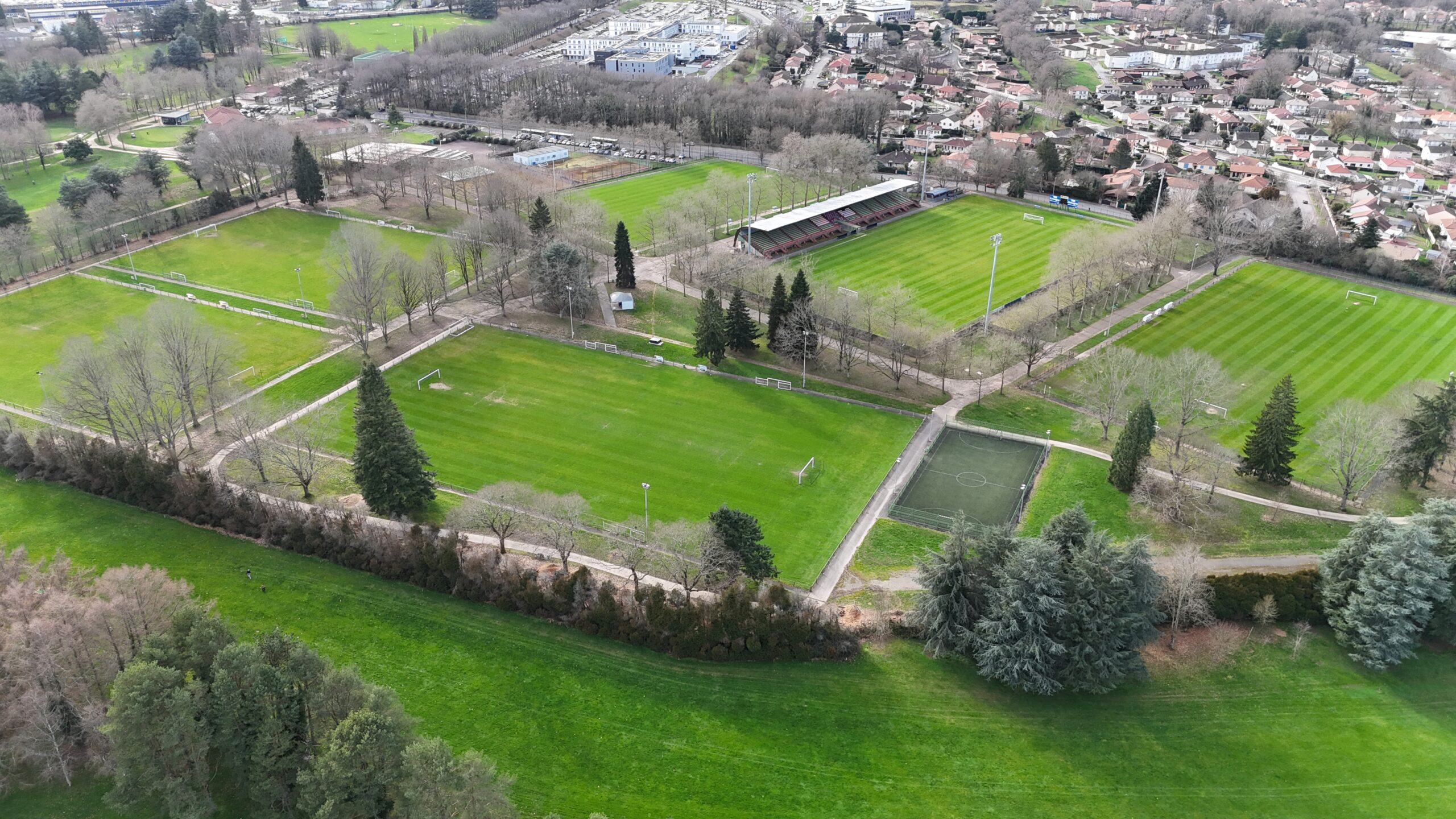 Ce complexe est doté de 7 terrains de football dont un terrain d’honneur d’une capacité de 2000 places. Il accueille également une piscine municipale, des courts de tennis, un terrain de basket, un city-stade et un parcours de santé.